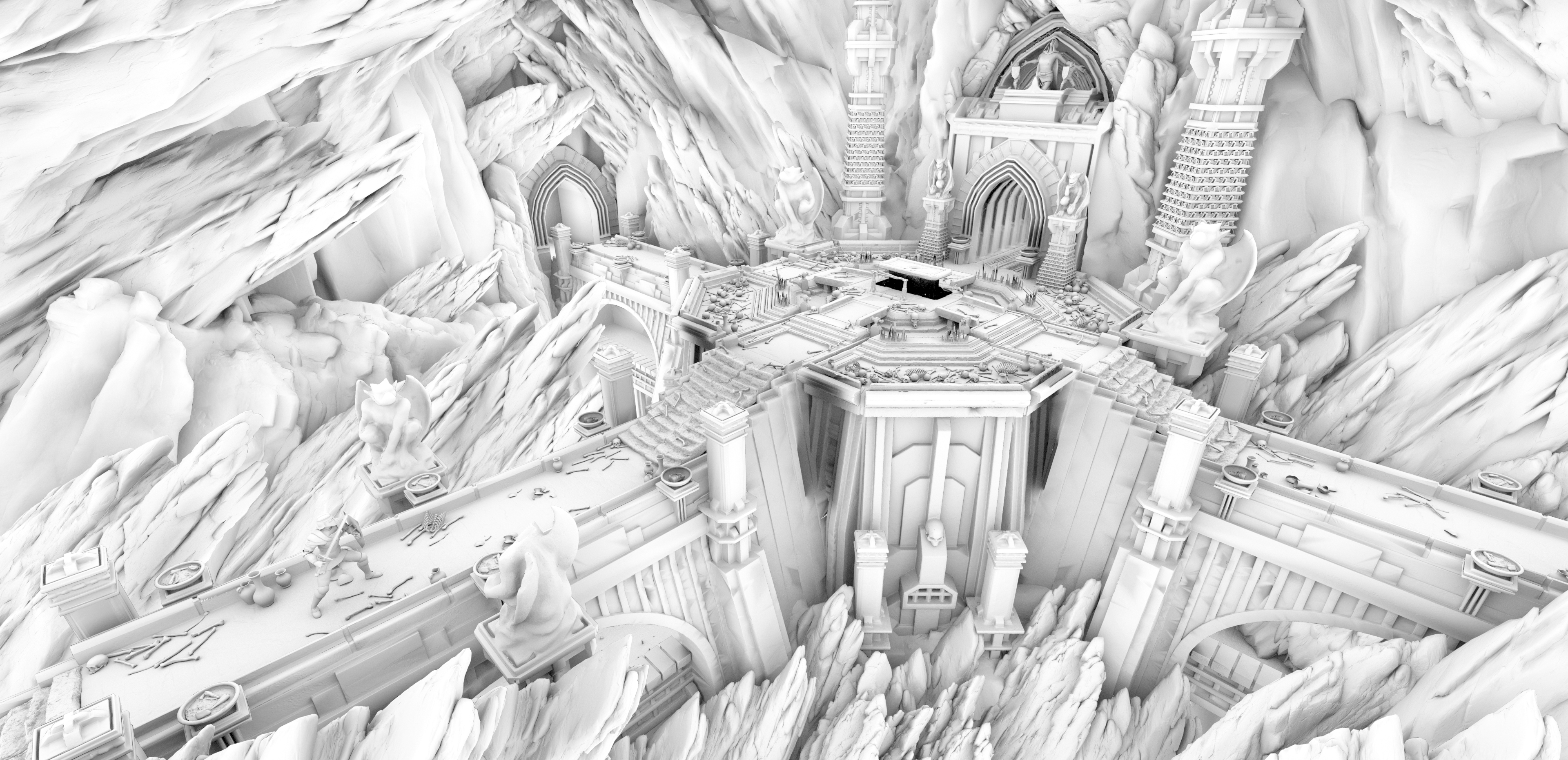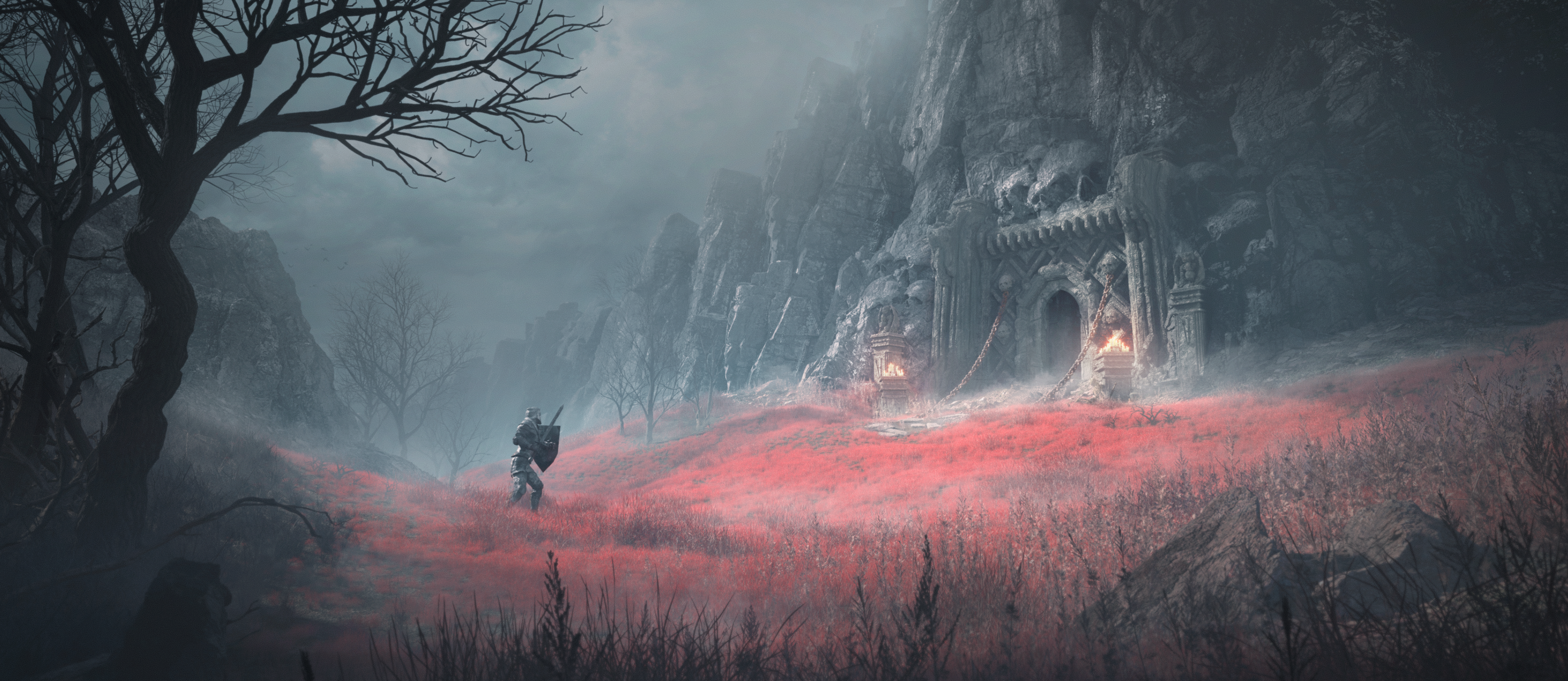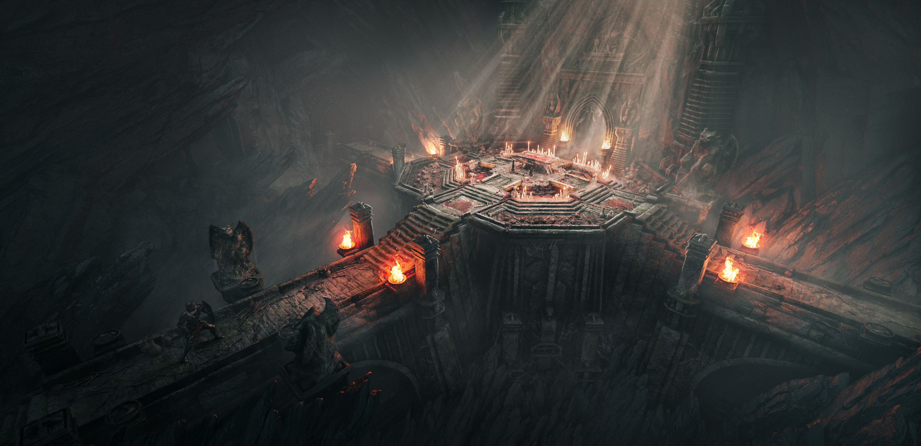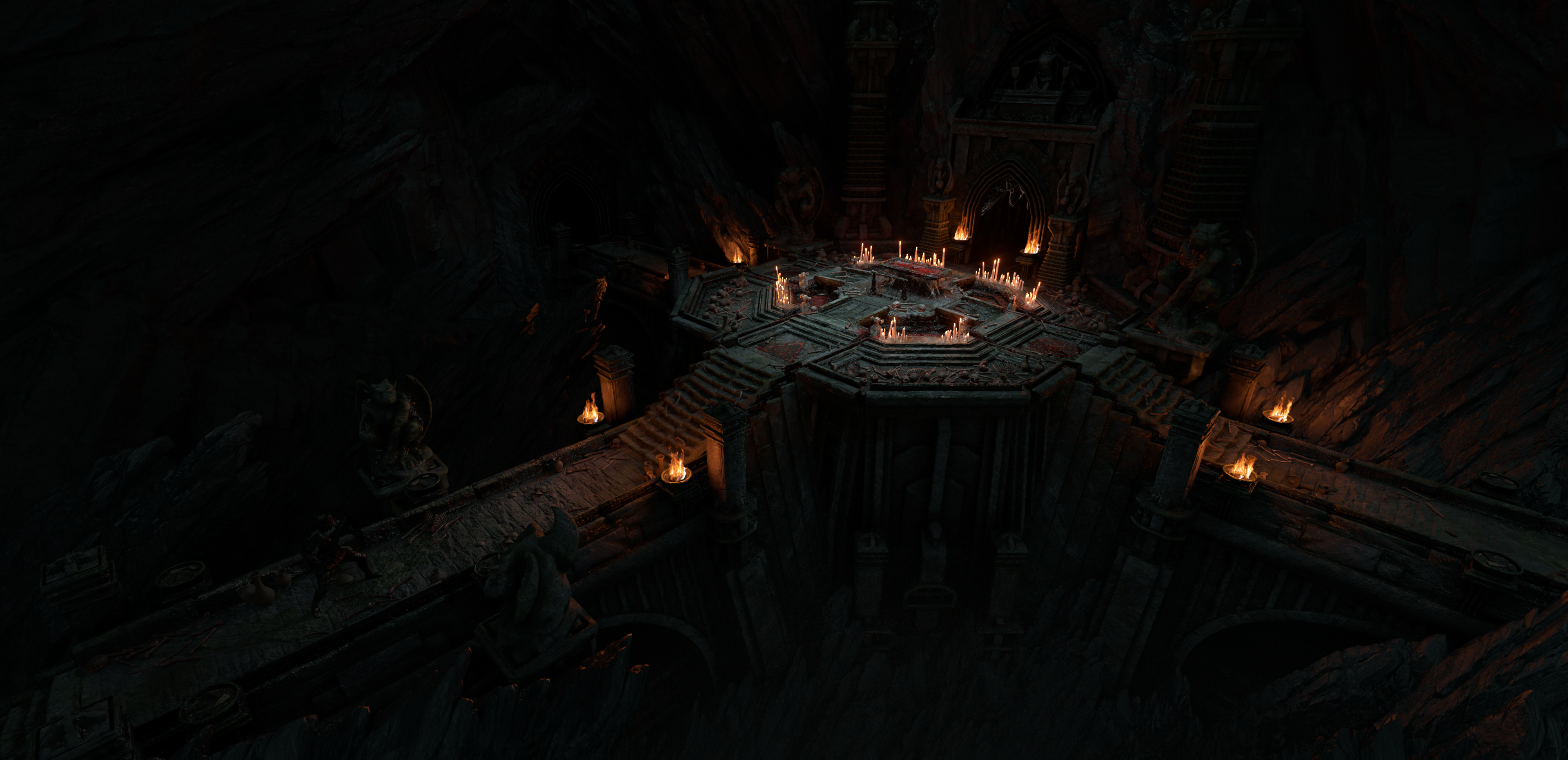This piece depicts a creepy and eerie ritual chamber, where a blood ritual takes place.