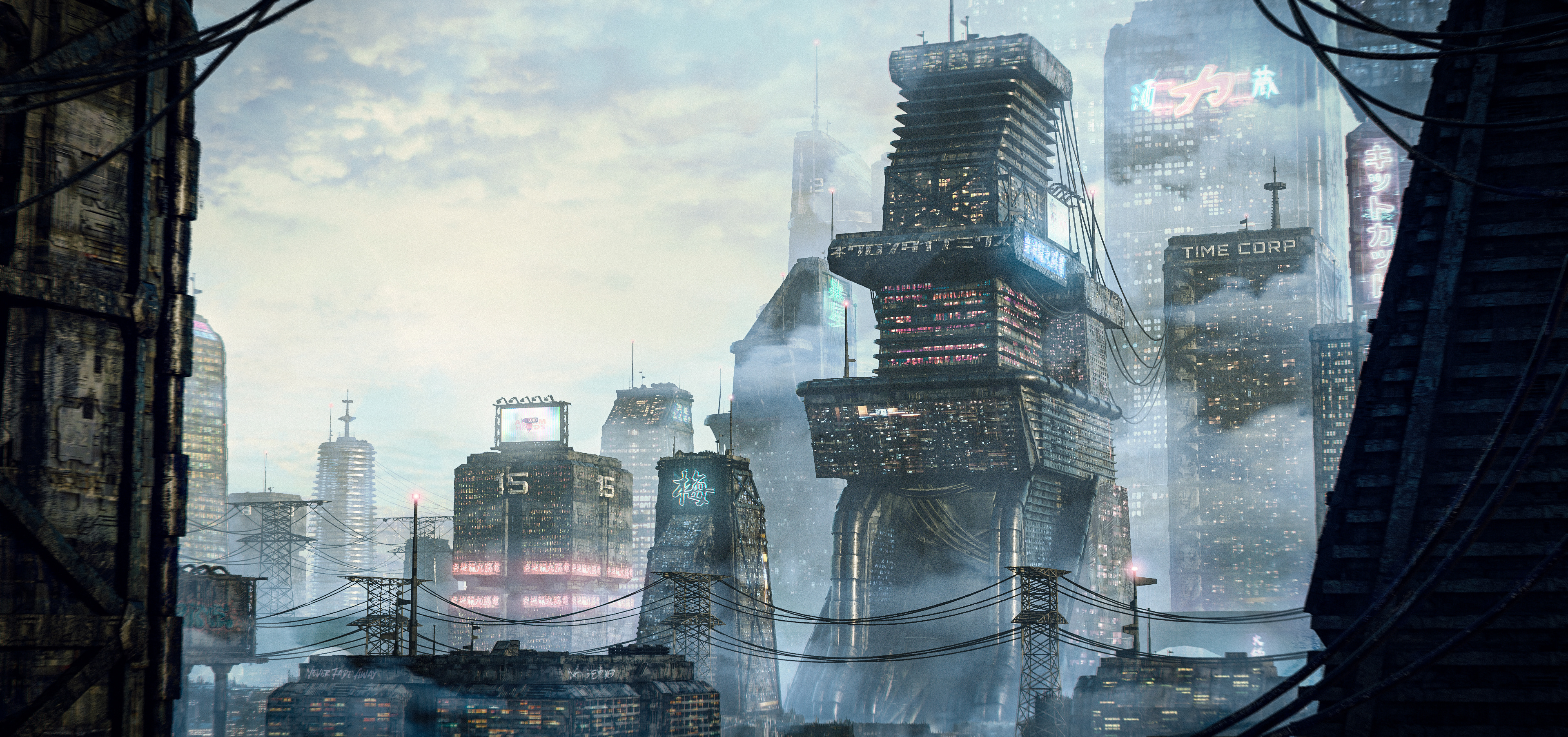 I've also placed bits of storytelling in this piece which makes the city more believable; The mega buildings which are home to millions of civilians per building due to the overpopulation in this universe, also the little details such as the delivery-service drone, the automated trains and the air-traffic in the background.